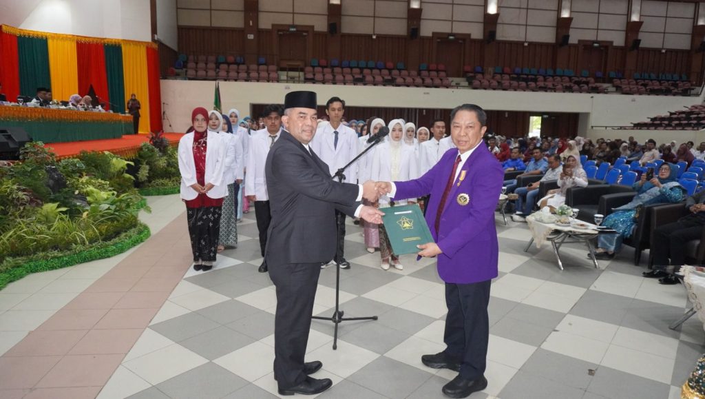 Penyerahan secara simbolis para dokter hewan yang baru diambil sumpah dan dilantik oleh Dekan FKH USK, drh. Teuku Reza Ferasyi, M.Sc., PhD., kepada Ketua Umum PB PDHI, Dr. drh. Muhammad Munawaroh, M.M pada Hari Rabu, 17 Desember 2025, di Gedung Dayan AAC Dawood USK, Banda Aceh.